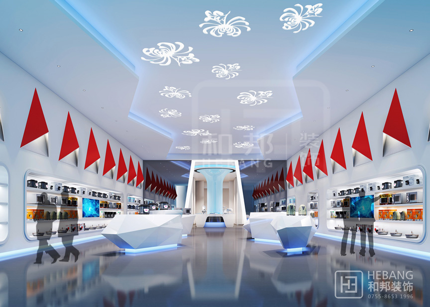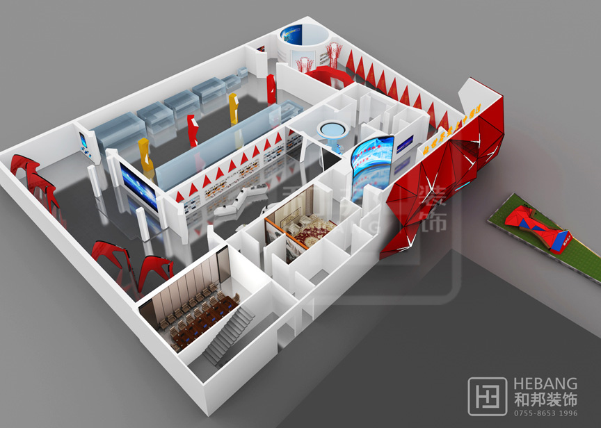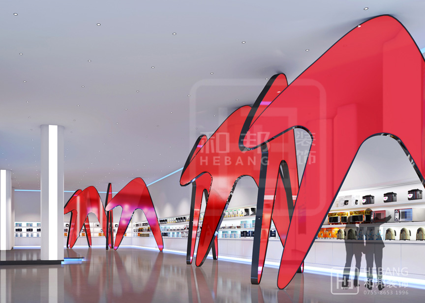 | 設(shè)計說明 | 格力集團展廳主體顏色為“中國紅”,整個設(shè)計現(xiàn)代感十足。不管是門頭設(shè)計采用的立體設(shè)計還是內(nèi)部的各種裝飾元素無不富有設(shè)計感。之外,整個展廳的科技感也是十分強的。 | ||||