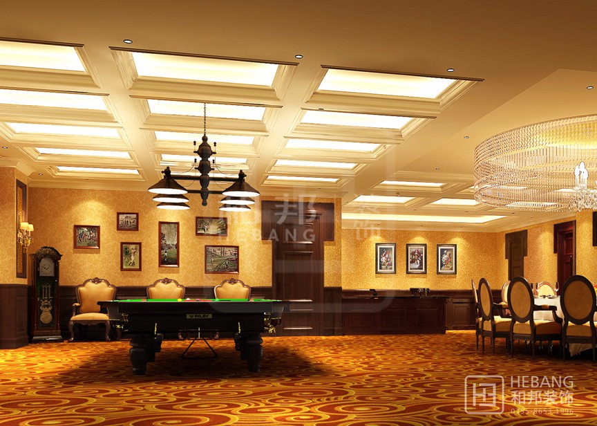 高端大氣的美式酒店。設計主要采用的是華麗的燈光裝飾設計,明亮閃耀的燈飾和漂亮的地毯一起作用于房間,好不愜意。