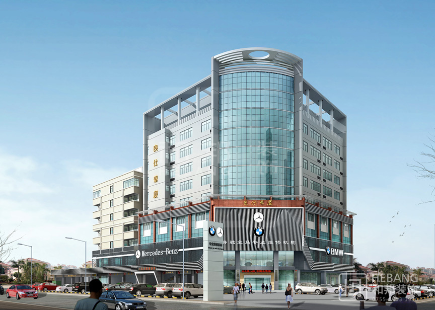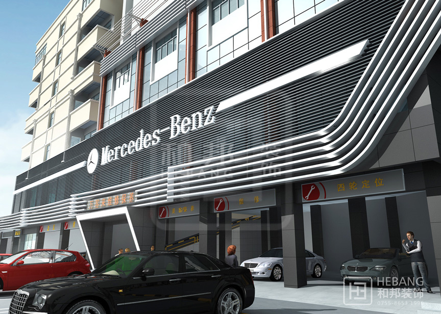 | 設(shè)計(jì)說明 | 高端大氣的現(xiàn)代設(shè)計(jì):以汽車頭部為原型設(shè)計(jì)的門頭,大膽新穎,創(chuàng)新十足。分區(qū)設(shè)計(jì),奔馳與寶馬維修店分布兩旁,使整個(gè)維修機(jī)構(gòu)美觀大方。 | ||||