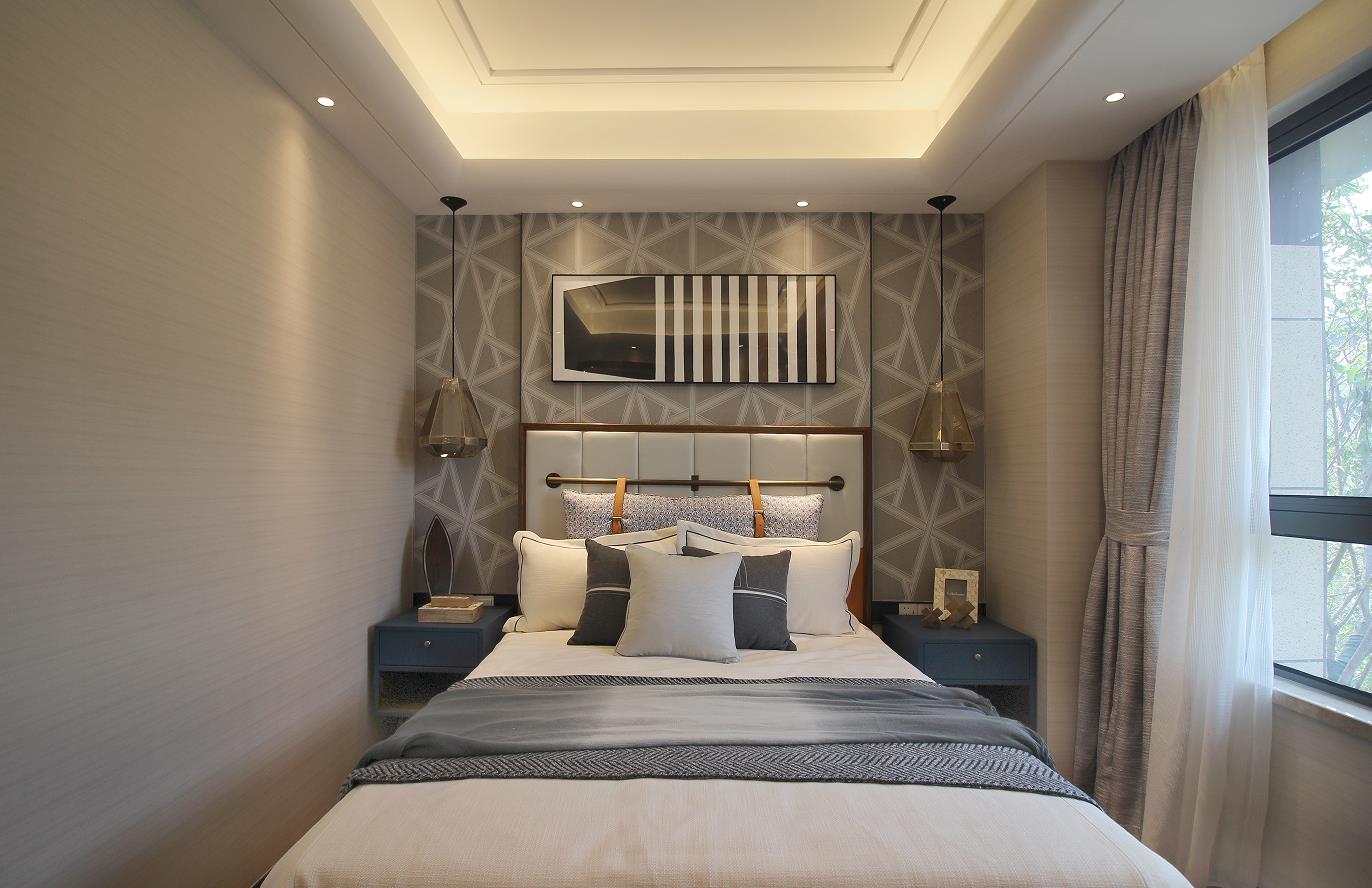 整體采用大地色家具,更加系統性,搭配上同樣休閑質感的床品,通過材質本身的層次與質感去傳達空間的氣韻。
